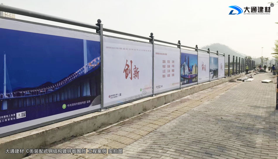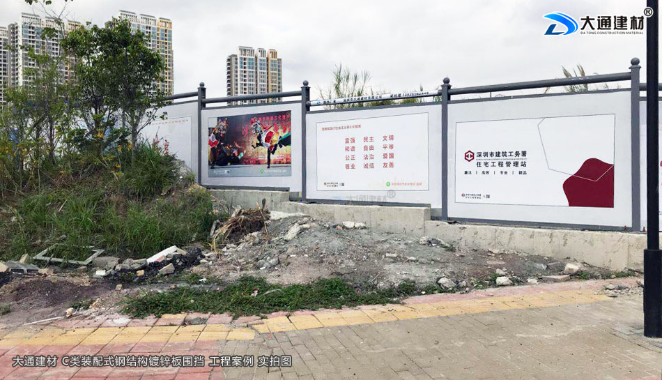深圳市大通建材有限公司,大格局、通天下! 新型裝配式鋼結(jié)構(gòu)圍擋A款/B款/C款,PVC圍擋,圍擋基礎(chǔ),工地大門等產(chǎn)品生產(chǎn)廠家電話13826562448