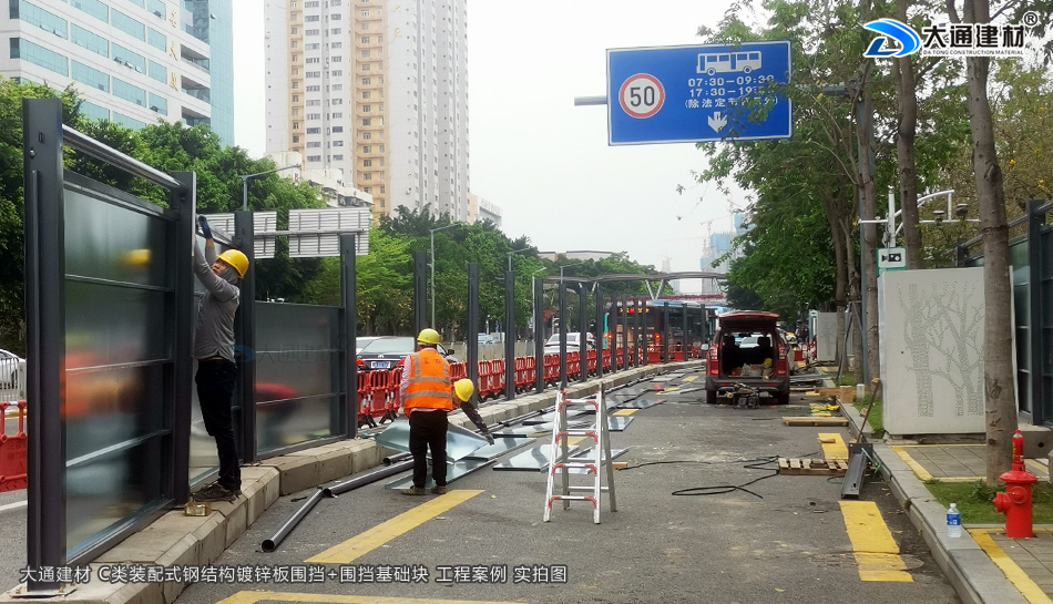 深圳市羅湖區(qū)黃貝街道項目工程使用的是深圳市大通建材提供的C類鍍鋅鋼結構圍擋+圍擋基礎塊,由大通建材公司專業(yè)團隊生產-銷售-配送-安裝等服務