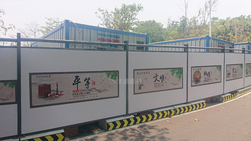 深圳市大通建材有限公司,大格局、通天下! 新型裝配式鋼結(jié)構(gòu)圍擋A款/B款/C款,PVC圍擋,圍擋基礎(chǔ),工地大門等產(chǎn)品生產(chǎn)廠家電話13826562448
