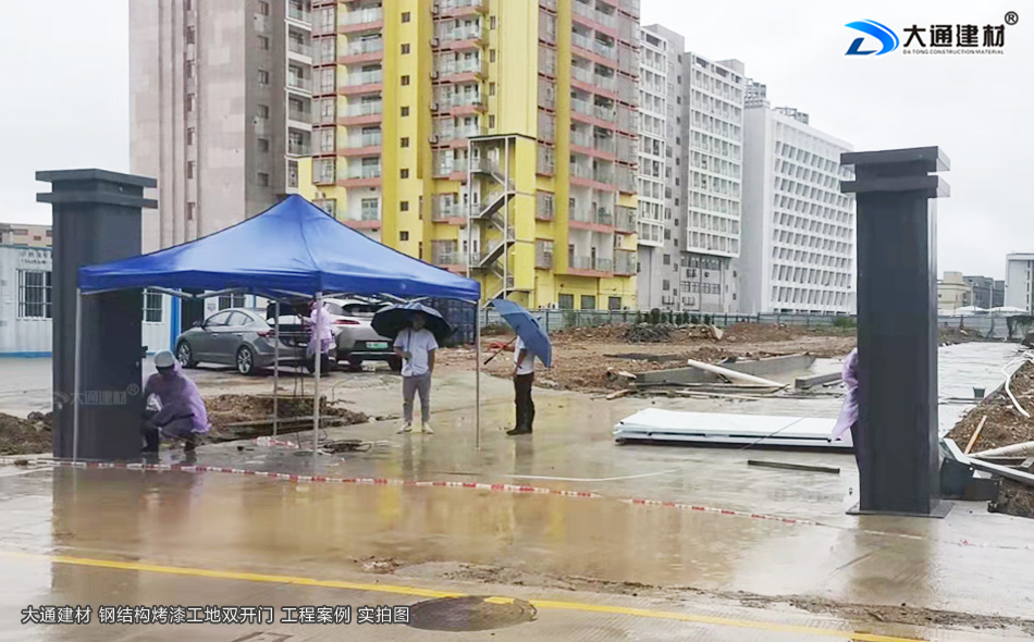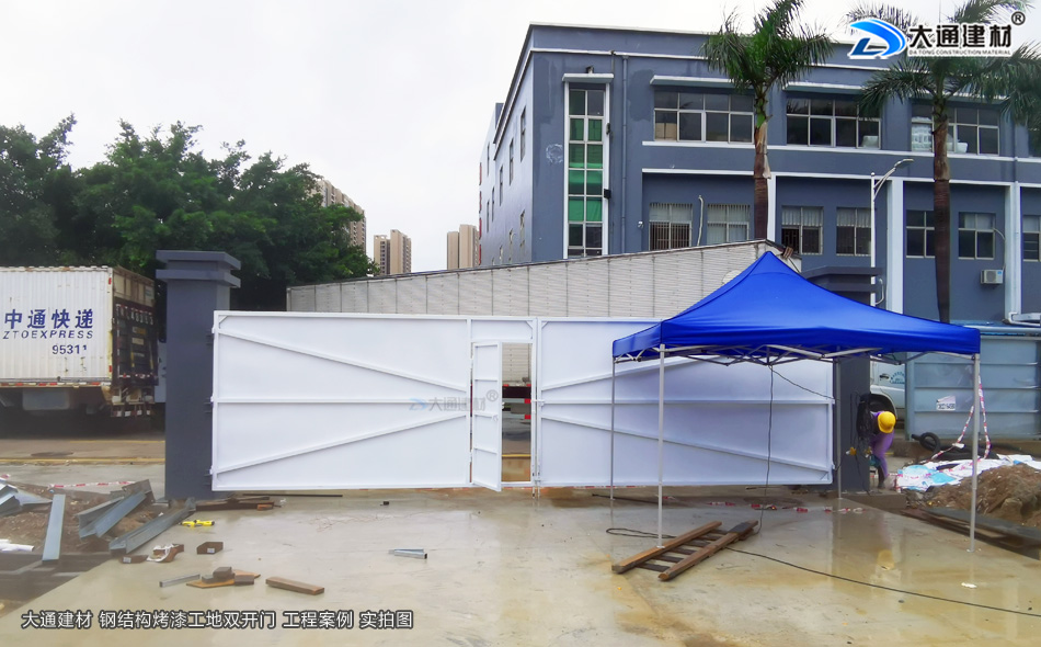 深圳施工項目大門-烤漆鋼結構工地雙開門