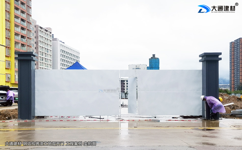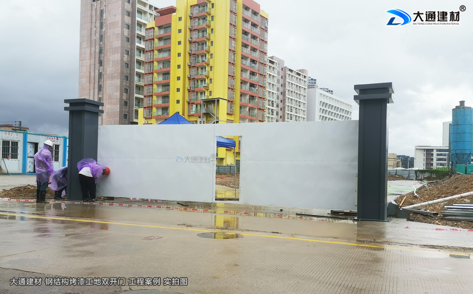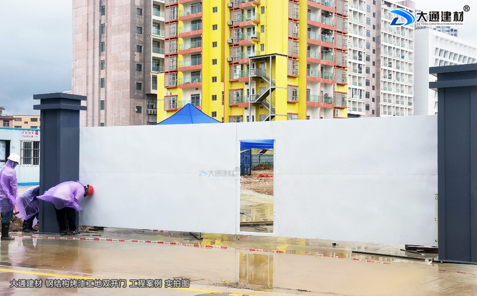 深圳施工項目大門-烤漆鋼結構工地雙開門-工地大門-深圳市大通建材有限公司鋼圍擋生產定制廠家