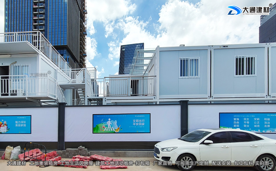 工地生活區(qū)板房-深圳工地集裝箱房-打包箱-集裝箱房-深圳市大通建材有限公司鋼圍擋生產(chǎn)定制廠家