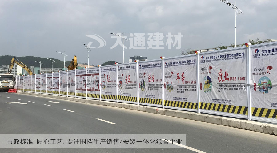 深圳市大通建材有限公司,大格局、通天下! 新型裝配式鋼結(jié)構(gòu)圍擋A款/B款/C款,PVC圍擋,圍擋基礎(chǔ),工地大門等產(chǎn)品生產(chǎn)廠家電話13826562448