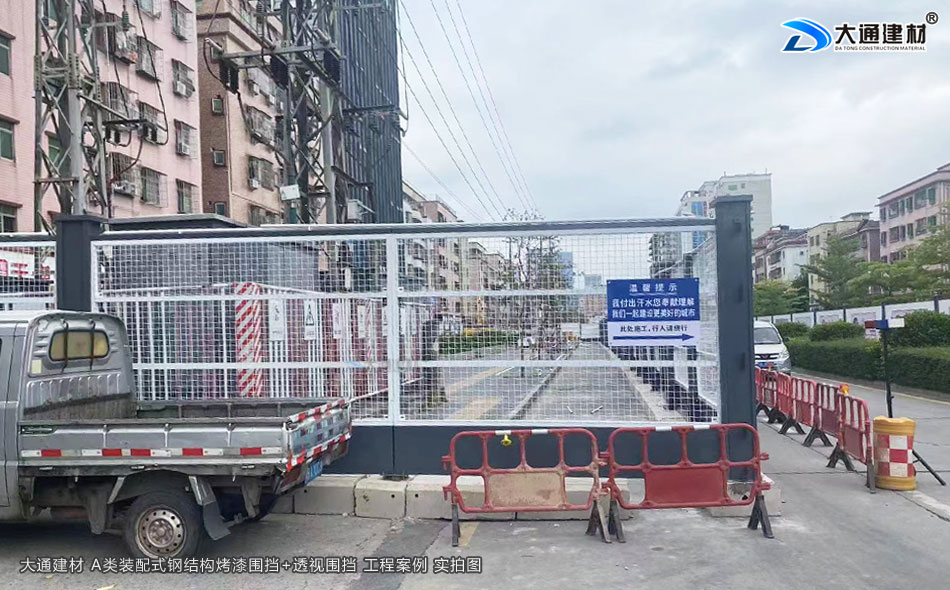大通工地透視圍擋+A類鋼結(jié)構(gòu)烤漆圍擋 深圳光明區(qū)工程案例-通透式圍擋-深圳市大通建材有限公司鋼圍擋生產(chǎn)定制廠家
