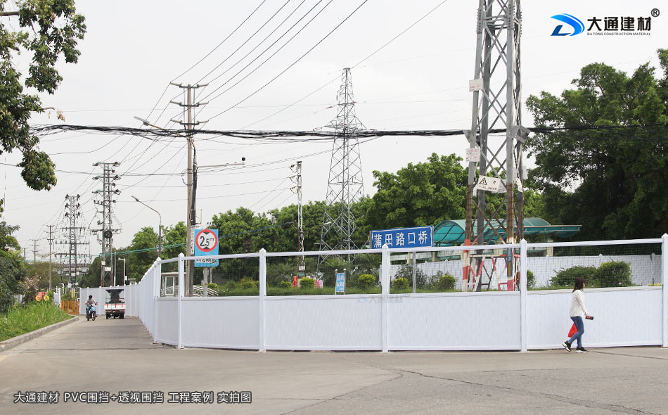 深圳市福田區(qū)蒲田路口橋項目工程采用的是深圳大通建材生產批發(fā)的半透明圍擋+pvc圍擋等產品,美觀環(huán)保、安裝方便快捷、安全穩(wěn)固…