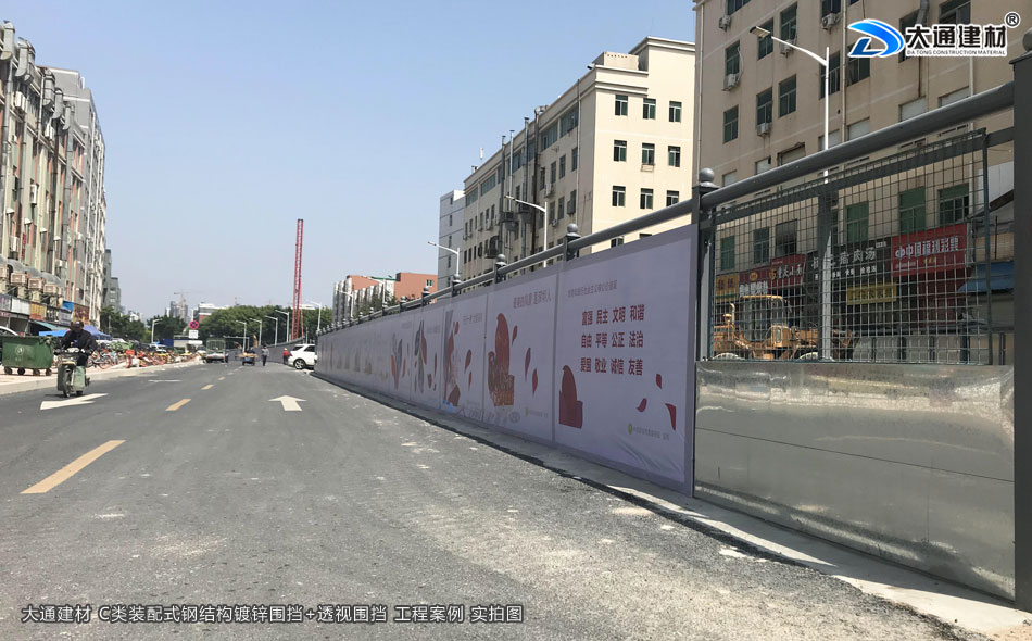 大通建材生產(chǎn)批發(fā)的 半通透式圍擋+C類鋼結(jié)構(gòu)鍍鋅圍擋應(yīng)用于深圳項(xiàng)目工程工地中