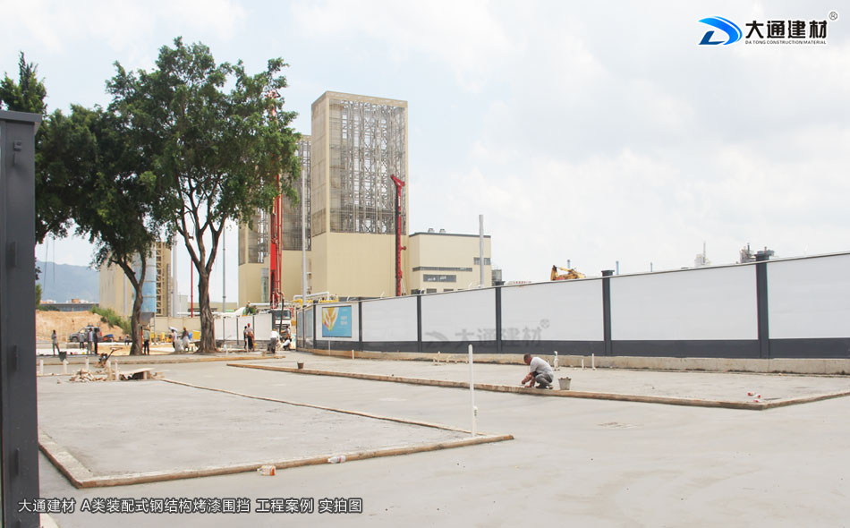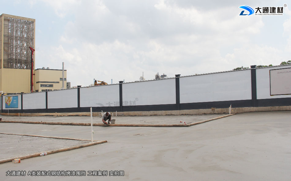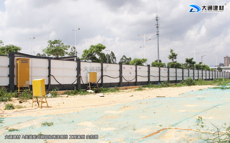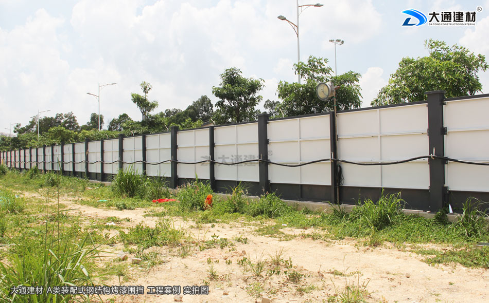 東莞東坑鎮(zhèn)工地臨時施工工程選用的是深圳市大通建材有限公司生產(chǎn)批發(fā)的鋼結(jié)構(gòu)圍擋a類2.5米高半龍骨款 來對施工工地進(jìn)行隔離防護(hù)