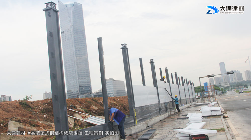 深圳市大通建材有限公司,大格局、通天下! 新型裝配式鋼結(jié)構(gòu)圍擋A款/B款/C款,PVC圍擋,圍擋基礎(chǔ),工地大門等產(chǎn)品生產(chǎn)廠家電話13826562448