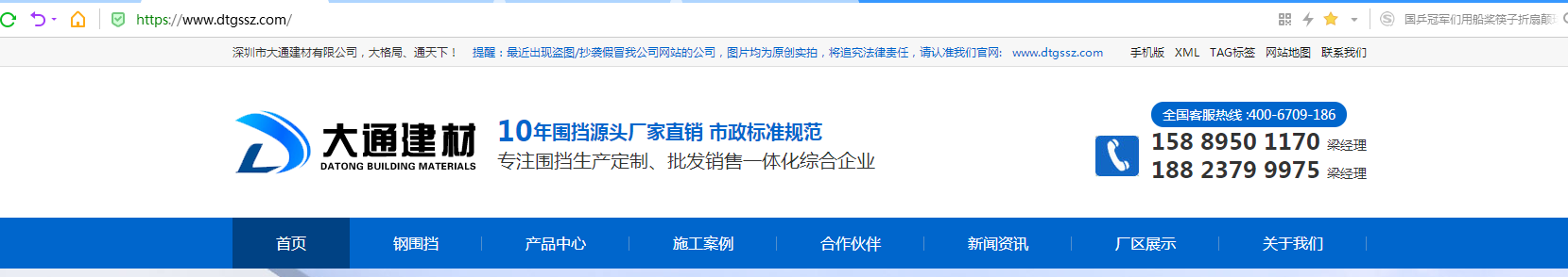 用戶進入大通官網(wǎng),可以看到在官網(wǎng)右上角就有負(fù)責(zé)圍擋銷售負(fù)責(zé)人的聯(lián)系電話,用戶可以直接電話與銷售負(fù)責(zé)人溝通 說出自己具體的需求產(chǎn)品即可獲取相應(yīng)的圍擋價格