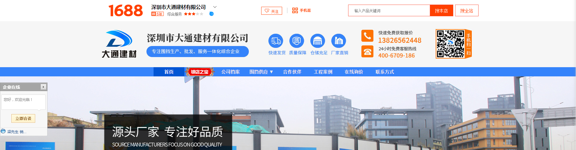 戶進入阿里巴巴大通官方店鋪,在大通官方店鋪每個頁面的左邊小方框有個“企業(yè)在線咨詢工具”描述自己具體的需求產(chǎn)品 與在線客服溝通 即可獲取相應(yīng)的圍擋價格