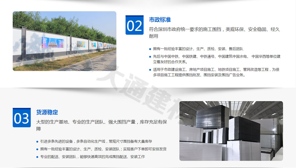 深圳市大通建材有限公司,大格局、通天下! 新型裝配式鋼結(jié)構(gòu)圍擋A款/B款/C款,PVC圍擋,圍擋基礎(chǔ),工地大門(mén)等產(chǎn)品生產(chǎn)廠家電話13826562448