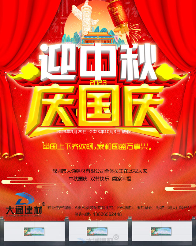 大通圍擋為您解答關(guān)于“深圳市大通建材有限公司祝大家“中秋國慶節(jié)”快樂”相關(guān)問題?