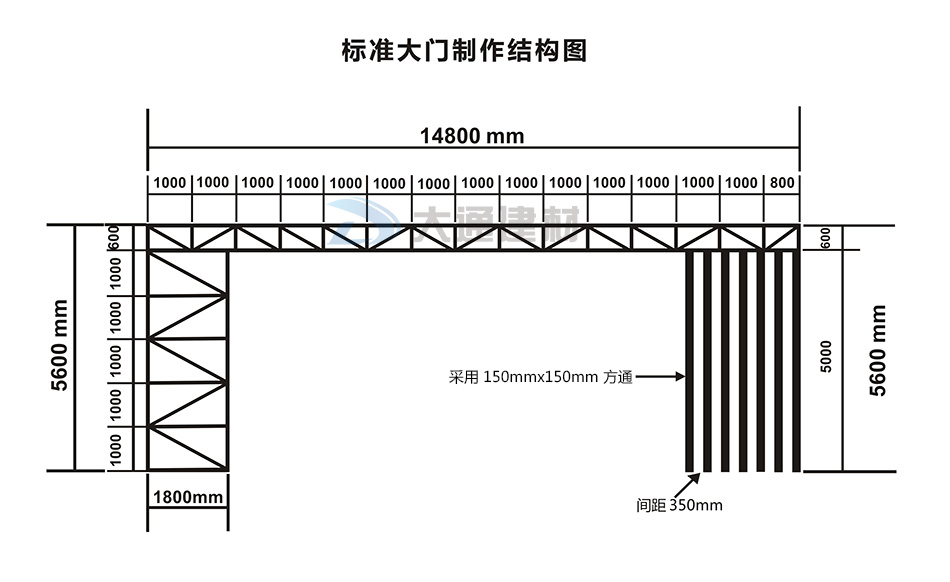 深圳市大通建材有限公司是一家專業(yè)生產(chǎn)標(biāo)準(zhǔn)工地大門廠家,今天小編與大家一起看看大通建材生產(chǎn)的標(biāo)準(zhǔn)工地大門的常規(guī)款式有哪些吧。大通建材常規(guī)款式的標(biāo)準(zhǔn)工地大門規(guī)格尺寸:14.8米寬x5.6米高 具體參數(shù)如下展示的尺寸規(guī)格圖