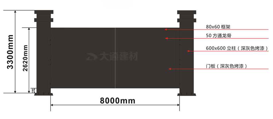 大通鋼結(jié)構(gòu)烤漆款標(biāo)準(zhǔn)工地大門(款式一)規(guī)格參數(shù) 如下圖