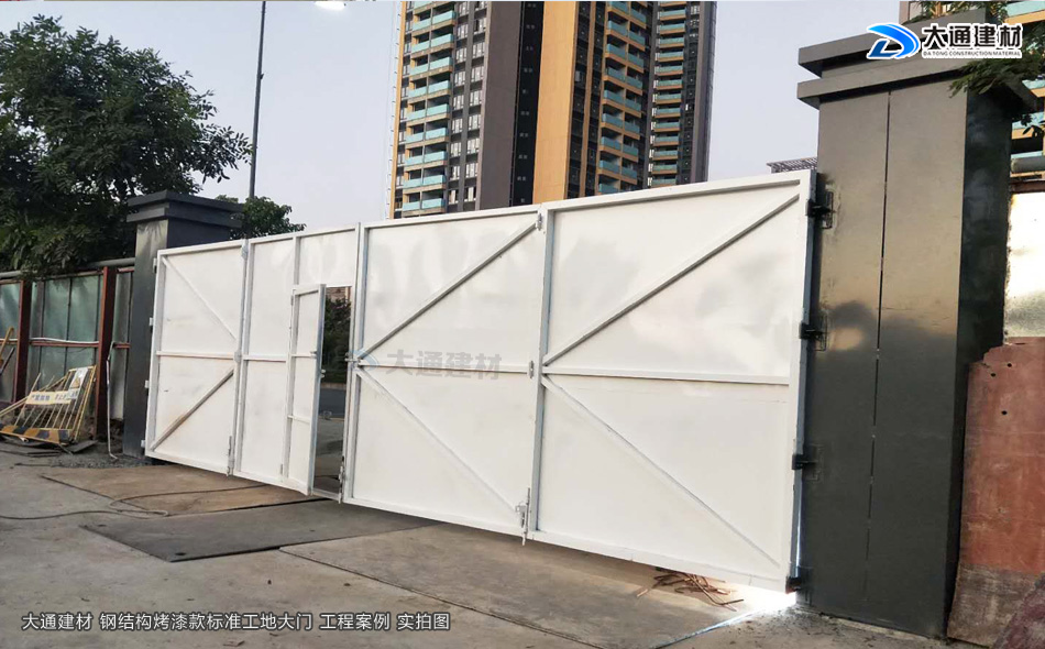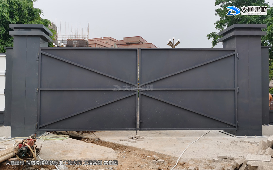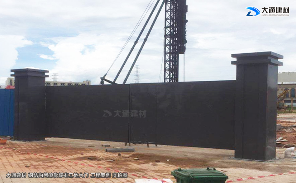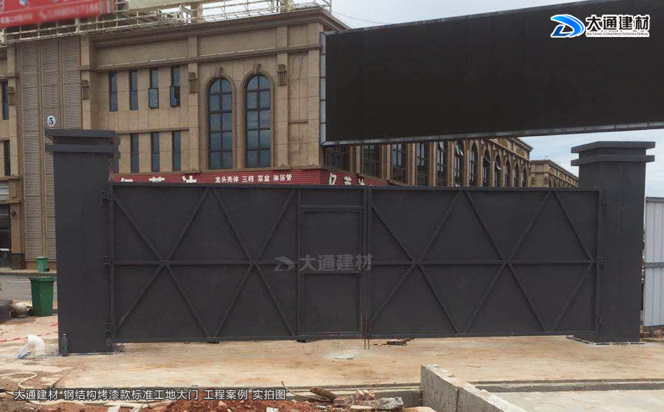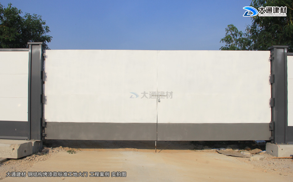 我們知道現(xiàn)在市政要求基本上每一個項目施工工地現(xiàn)場都需要安裝圍擋護欄后,方可施工,而施工現(xiàn)場工地大門基本是伴隨著施工圍擋存在的。今天大通小編與大家看看大通鋼結(jié)構(gòu)烤漆款標(biāo)準(zhǔn)工地大門有哪些款式