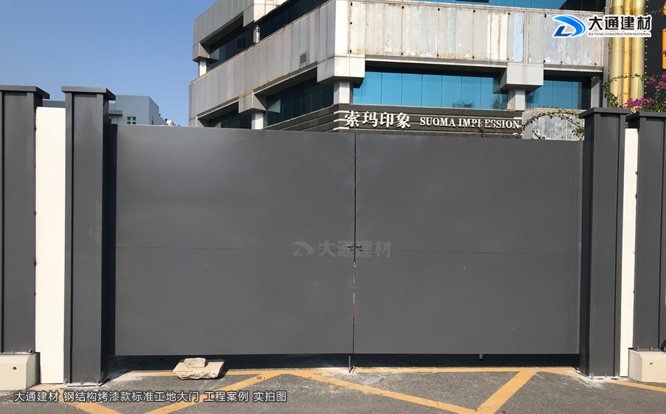 深圳大通建材是生產(chǎn)鋼結(jié)構(gòu)烤漆款標(biāo)準(zhǔn)工地大門源頭廠家,在東莞設(shè)有大型的標(biāo)準(zhǔn)工地大門生產(chǎn)基地,大通標(biāo)準(zhǔn)工地大門貨源充足,常規(guī)款標(biāo)準(zhǔn)工地大門有現(xiàn)貨,下單可安排裝車配送安裝,特殊需求的工地大門,可定制化生產(chǎn)。了解更多“標(biāo)準(zhǔn)工地大門”詳情 歡迎來電咨詢洽談 13826562448 梁先生
