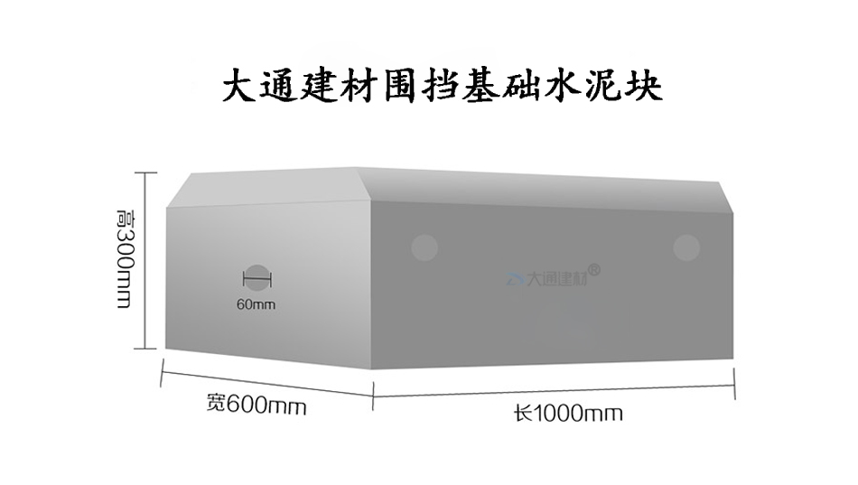 2、水泥預(yù)制塊圍擋基礎(chǔ):預(yù)制塊基礎(chǔ)尺寸:1000*600*300mm、整齊擺放,空位穿50*50mm鋼管,用混泥土四周加固。
