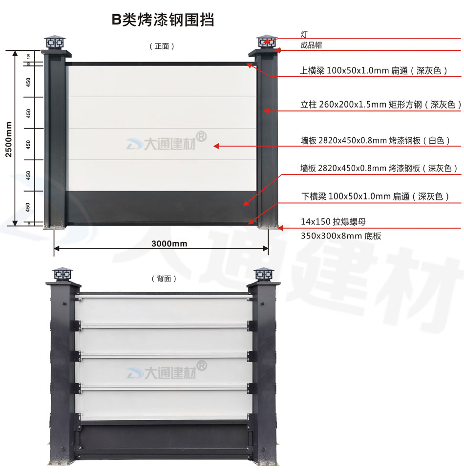 深圳市大通建材工程施工圍擋 B類裝配式鋼圍擋-烤漆款 產(chǎn)品特點(diǎn)