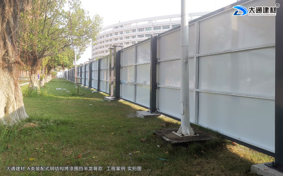 深圳大通建材生產(chǎn)的2米1高A類裝配式烤漆鋼圍擋半龍骨款 適用于各種項目工程:如市政工程建設(shè)施工、房地產(chǎn)項目建設(shè)施工、地鐵修建項目施工、管網(wǎng)改造、小區(qū)改造、城市建設(shè)、道路修建施工等工程修施工外圍使用
