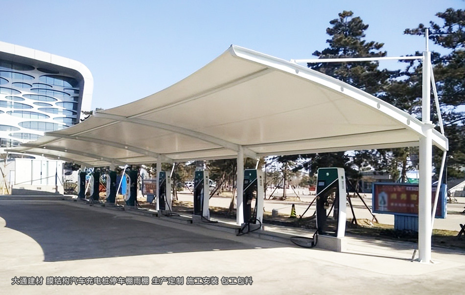 深圳大通建材提供 小汽車充電樁-停車棚雨棚廠家直銷-戶外膜結構停車棚 生產定做 配送施工安裝等服務