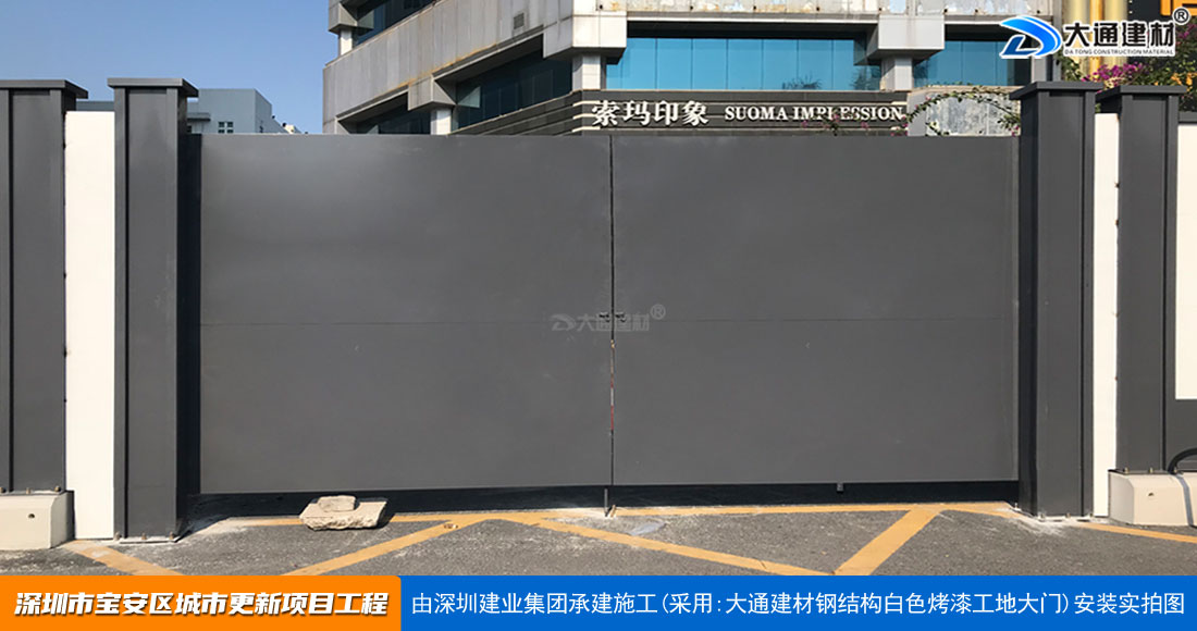 大通建材 鋼結(jié)構(gòu)工地烤漆雙開門的大門的顏色可選用深灰色烤漆(如上圖展示的案例)或白色烤漆(如下圖展示的案例)