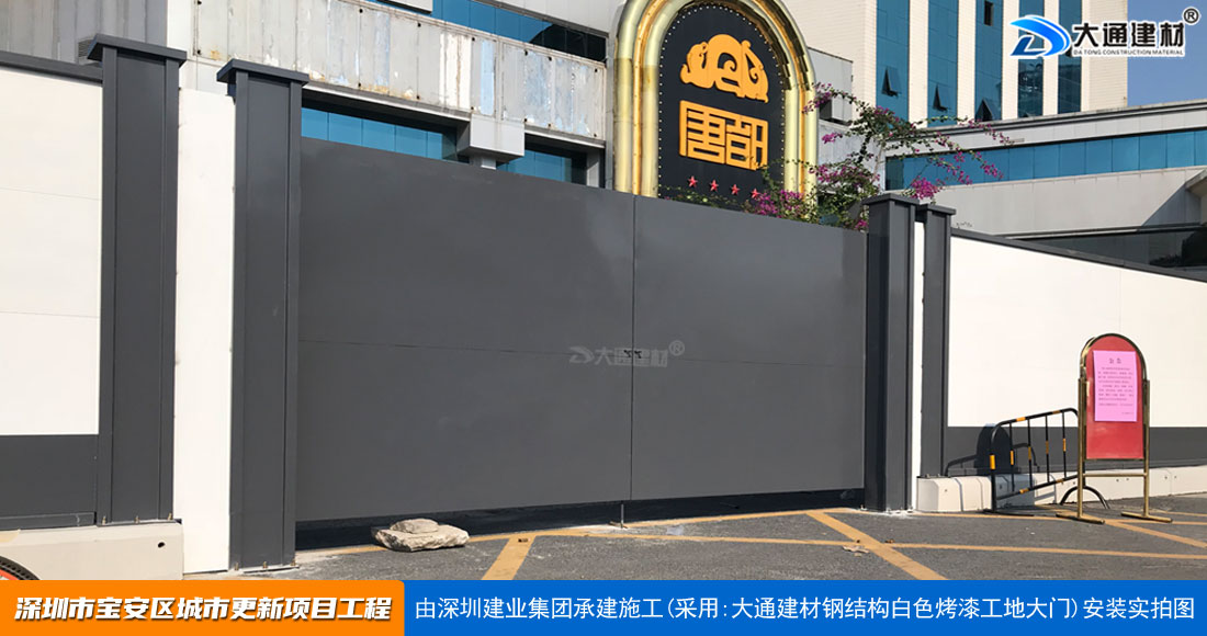 深圳市大通建材專業(yè)鋼結(jié)構(gòu)工地烤漆雙開門生產(chǎn)批發(fā)源頭廠家,在東莞設(shè)有大型工地鋼結(jié)構(gòu)烤漆大門生產(chǎn)基地,貨源充足,由廠家直接銷售價格便宜;一龍條服務(wù),能夠?qū)崿F(xiàn)客戶下單后馬上發(fā)貨安裝,客戶還可根據(jù)實(shí)際需求進(jìn)行定制化生產(chǎn)。了解更多“大通建材工地大門”規(guī)格與價格詳情 請咨詢 13826562448 梁先生