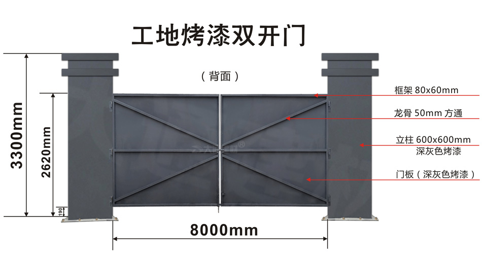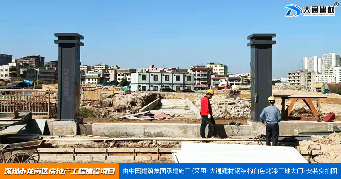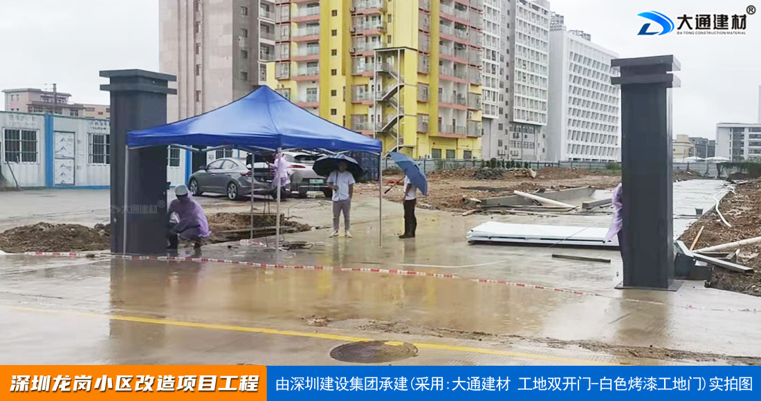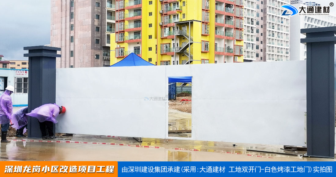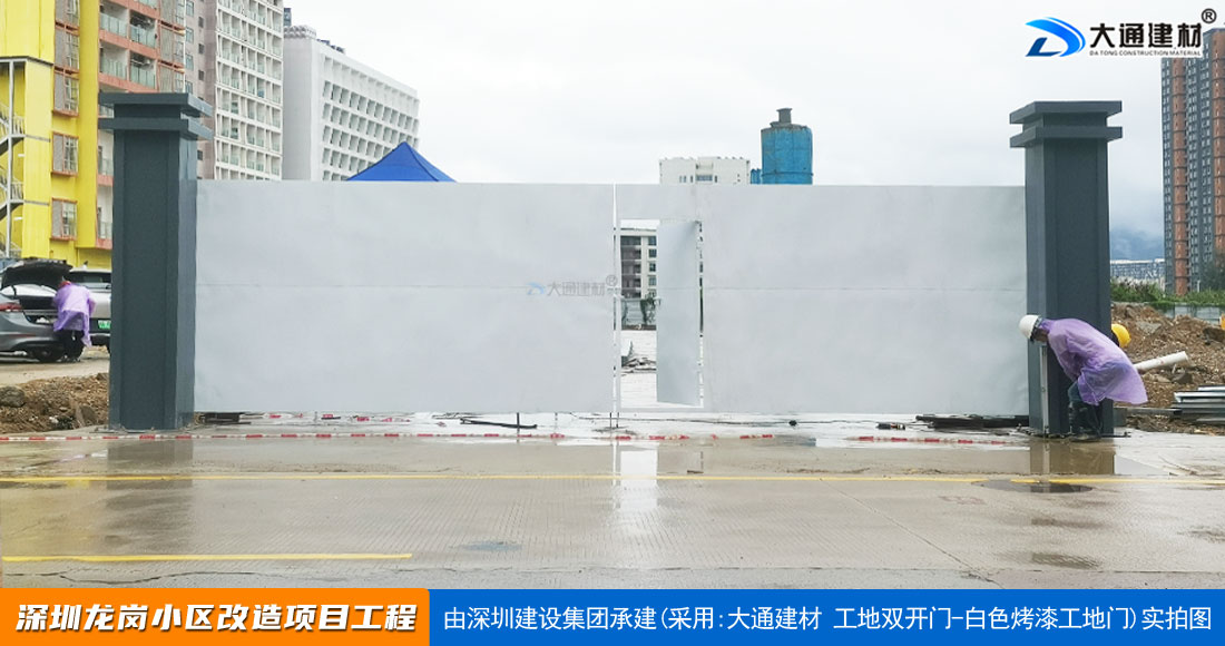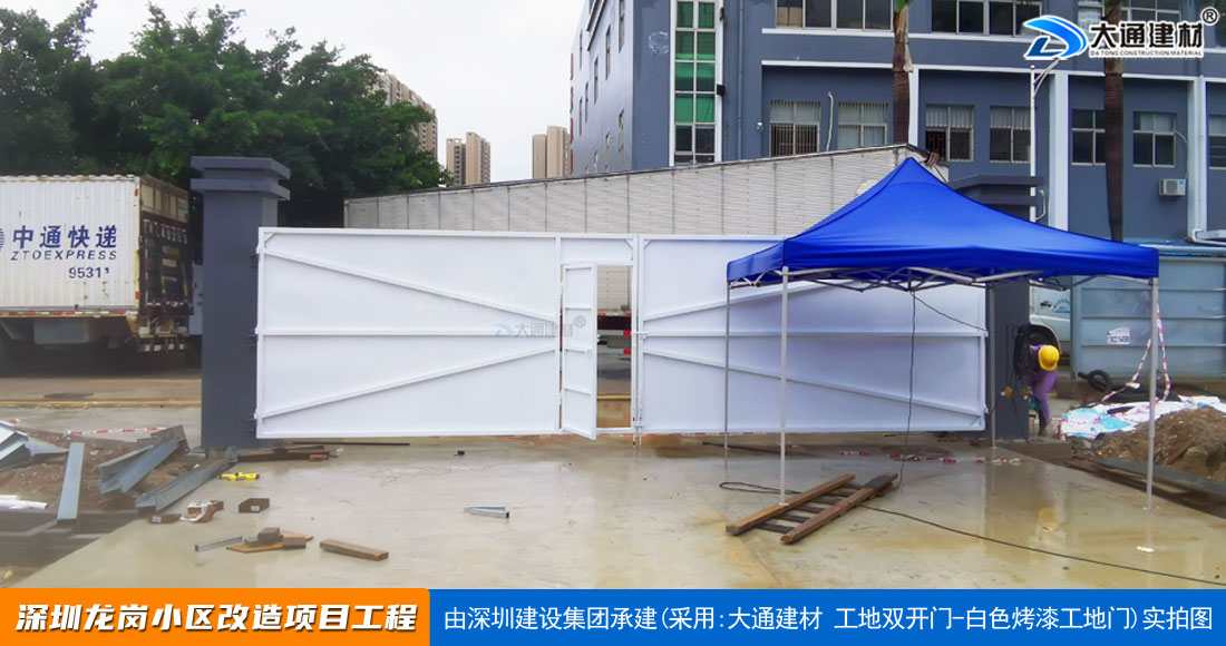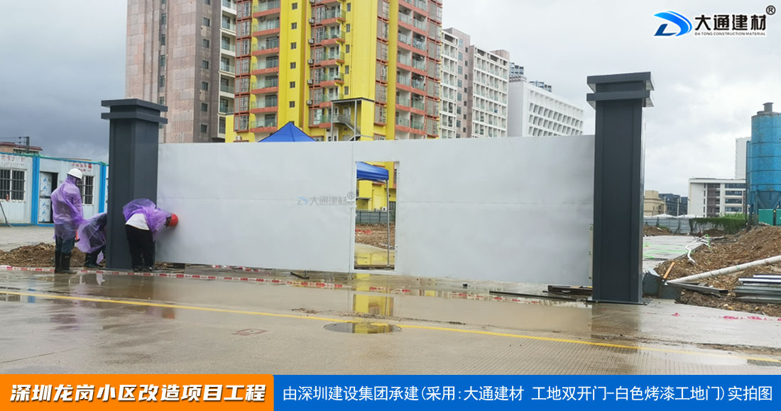 深圳大通建材生產銷售的工地烤漆雙開門-鋼結構工地大門適用于各種市政工程項目、房地產項目、地鐵修建項目施工、管網改造、小區(qū)改造、城市建設、道路修建等工程項目使用