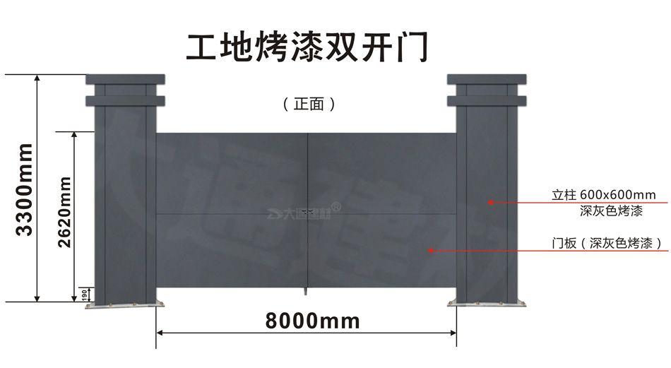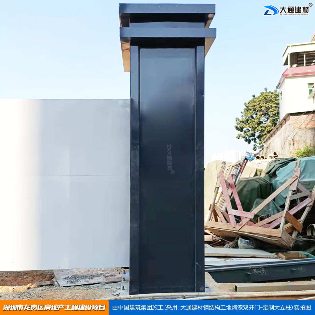 大通建材 工地烤漆雙開門-鋼結構工地大門(深灰色烤漆+ 定制款大立柱)案例展示