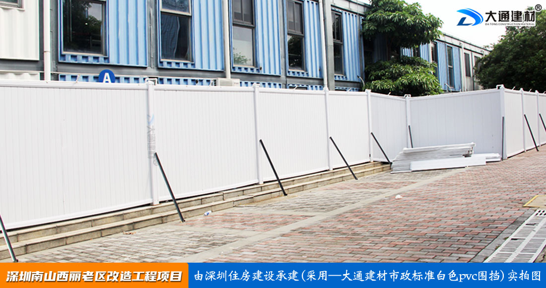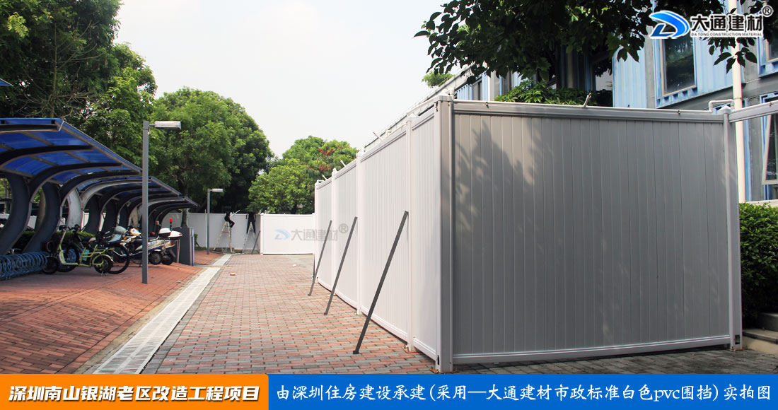 深圳市大通建材有限公司是一家集pvc圍擋研發(fā)、pvc圍擋生產(chǎn)、pvc圍擋銷售、pvc圍擋安裝于一體的圍擋廠家,強(qiáng)大產(chǎn)能,隨時有現(xiàn)貨,下單即可送貨、安裝。已廣泛應(yīng)用到深圳/東莞/惠州/廣州等地區(qū)的房地產(chǎn)建設(shè)施工、市政道路修建施工、小區(qū)改造施工等各類工程項目中,了解更多“大通PVC圍擋”規(guī)格及價格詳情 請咨詢:13826562448