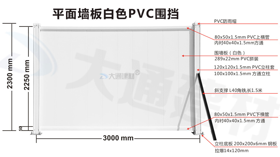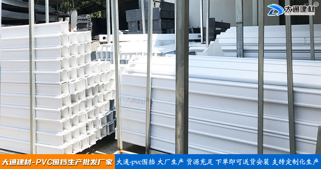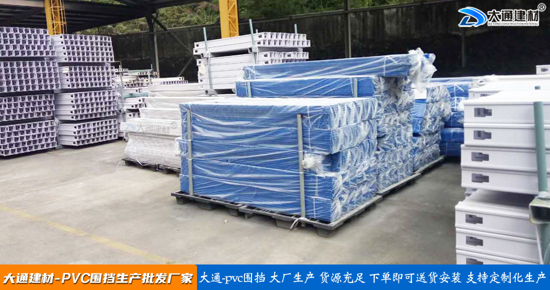 大通建材PVC圍擋立柱、橫管、擋板、斜支撐、橫撐加強(qiáng)筋等部件按照設(shè)計(jì)與生產(chǎn)標(biāo)準(zhǔn),尺寸與工藝實(shí)現(xiàn)標(biāo)準(zhǔn)化生產(chǎn)和標(biāo)準(zhǔn)化拼接安裝,從而達(dá)到高效率生產(chǎn)、快速運(yùn)輸和拼接式安裝,大大降低了圍擋的采購成本。