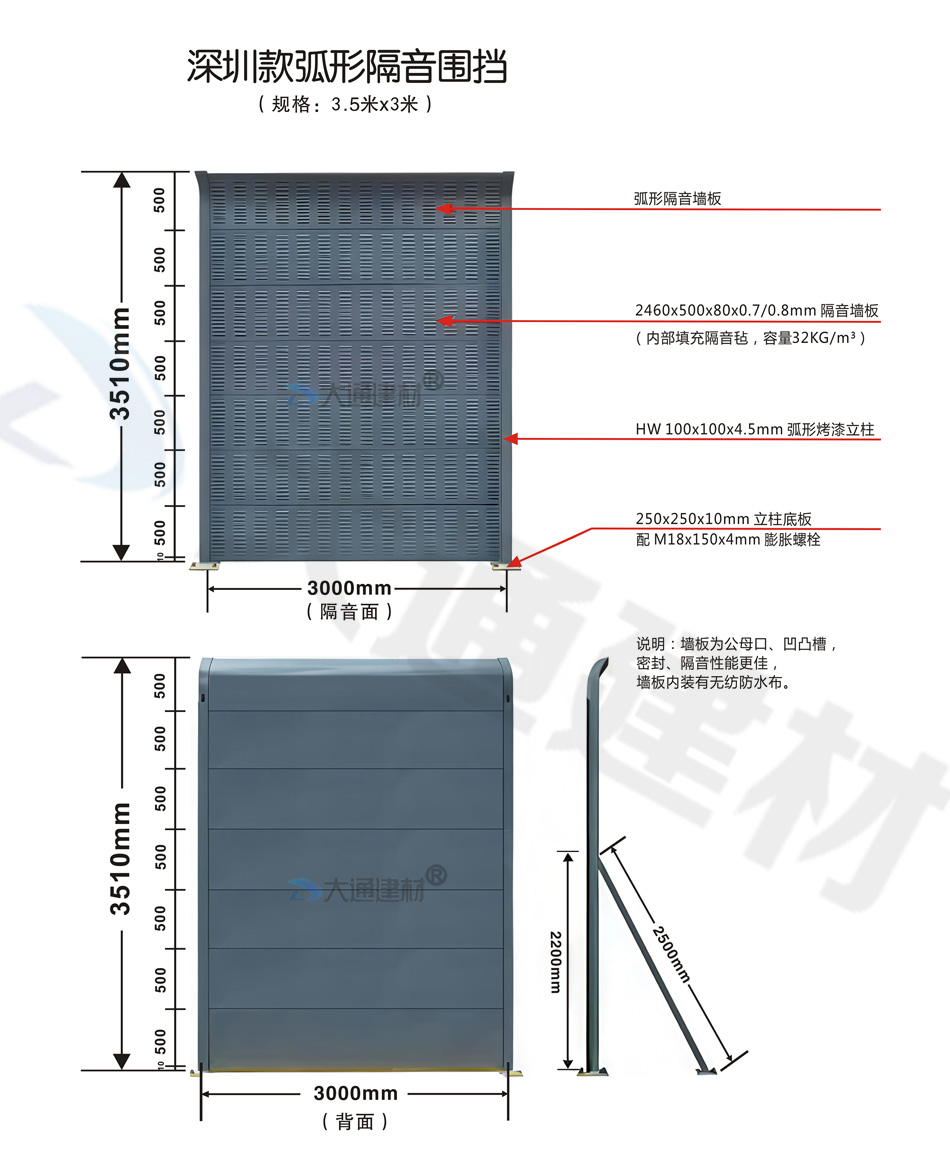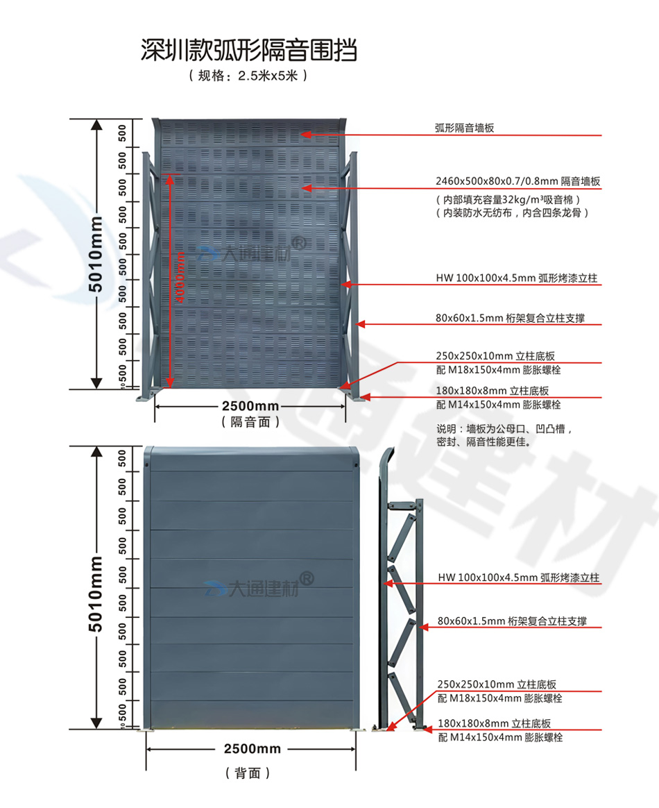 深圳市大通建材有限公司為各項目工程單位提供 各類隔音屏圍擋、鐵路隔音圍擋、公路隔音圍擋、高速隔音圍擋、高架橋隔音圍擋的生產(chǎn)定制、批發(fā)零售、配送安裝等包工包料的服務,具體詳情 請致電13826562448或微信dt13826562448梁先生
